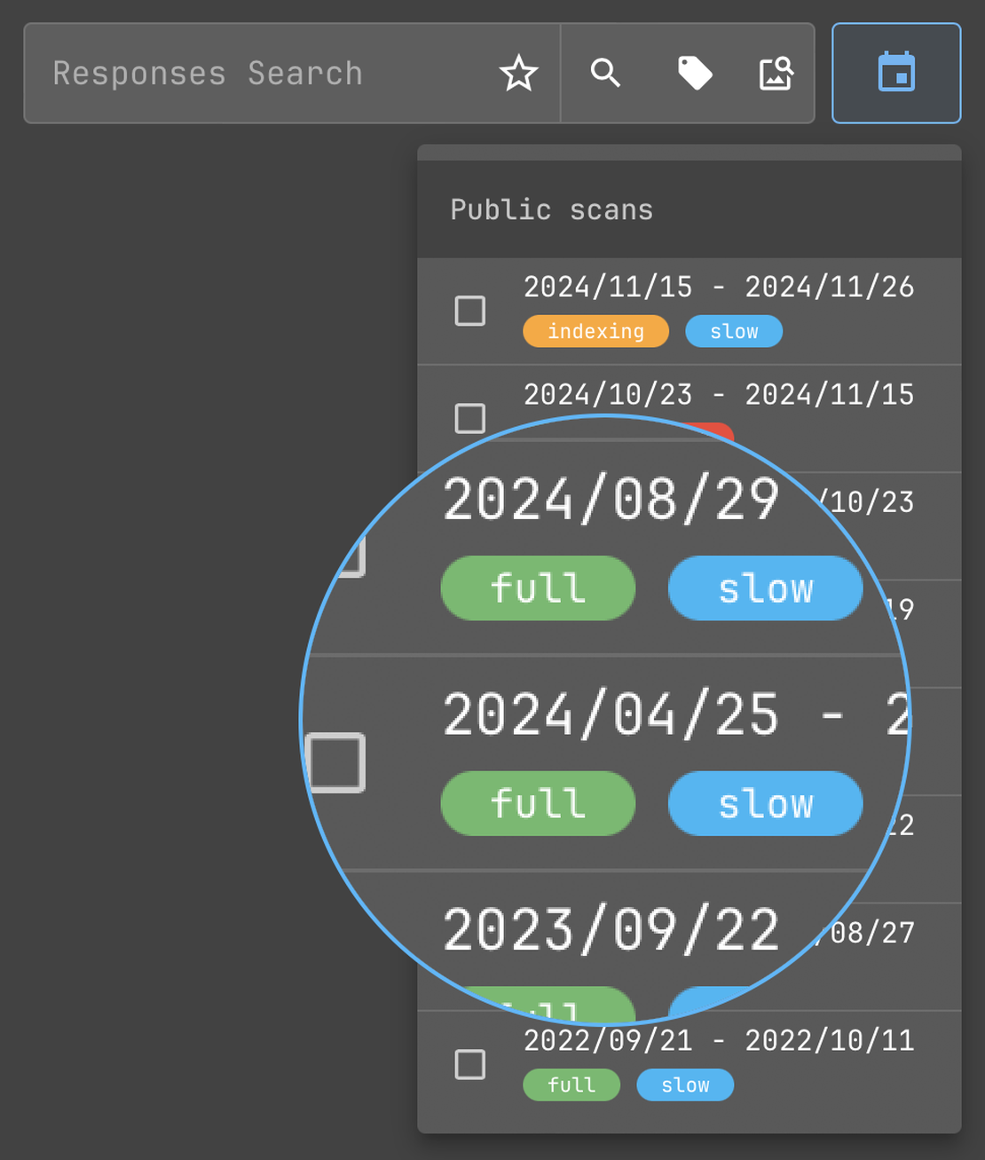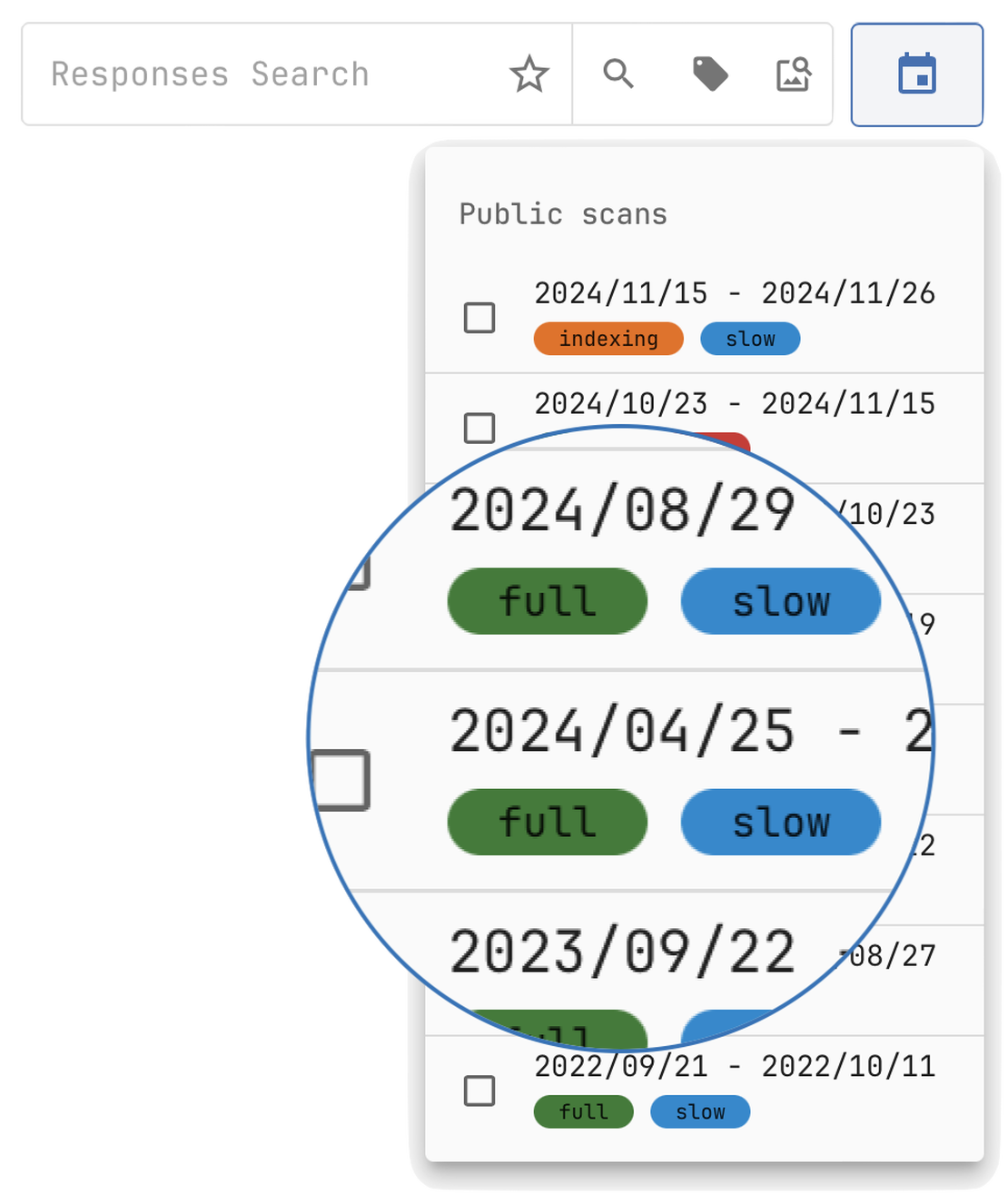 Netlas provides access to historical records for all data collections, except SSL certificates, enabling users to analyze how assets, configurations, and services have evolved. This historical perspective is invaluable for tracking changes in an organization’s digital footprint, spotting potential vulnerabilities, and conducting comprehensive assessments of evolving risks. SSL certificates, however, inherently contain validity periods and expiration details, making additional historical data unnecessary.